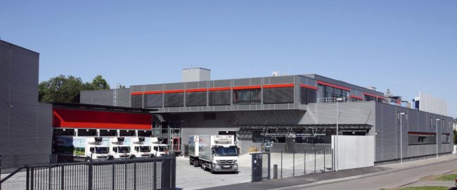 Fleischwerk Stuttgart Produktionsbetrieb für Fleisch und Wurstwaren, Convenience Kühllager Tiefkühllager Hochregallager, Palettenregallager Kisten- und Palettenfördertechnik Automatische Palettierung Kommissionierlager, Pickregallager Versandhallen, Verladesysteme Warenflüsse Lagerverwaltung Verwaltung Installationsgeschosse Personalwege, Reinigungsschleusen