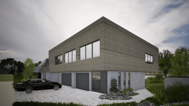 Umbau-, und Erweiterungsbau in Weingarten Moderne Architektur trifft auf einen Bestandsbau. Hier entsteht ein Mehrgenerationen Wohnkonzept für zwei eigenständige Wohneinheiten.