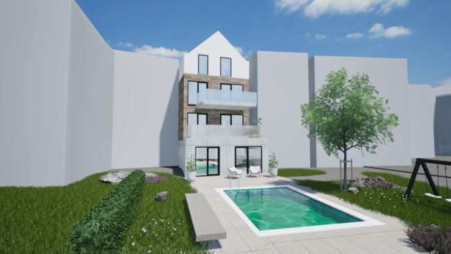 Abbruch und Wiederaufbau einer Bestandsimmobilie in Bad Waldsee Mehrgeschossiger Wohnungsbau zum Einfamilienhau mit Garage integriert städtebauliche Baulücke.